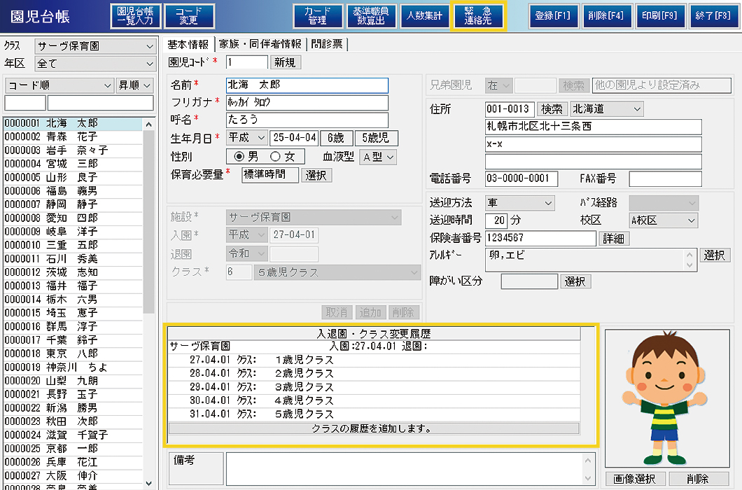 - 園児台帳との連動