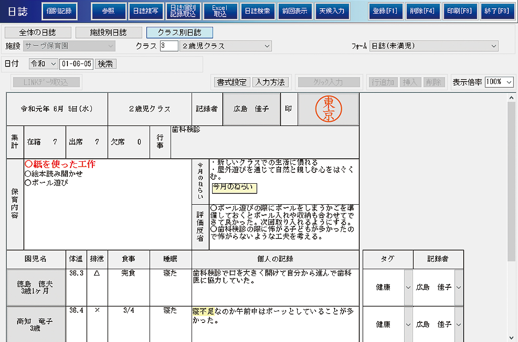- 台帳、月・週・日案と連動した指導計画の作成