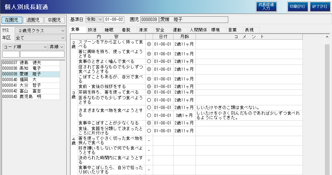 個人別成長経過