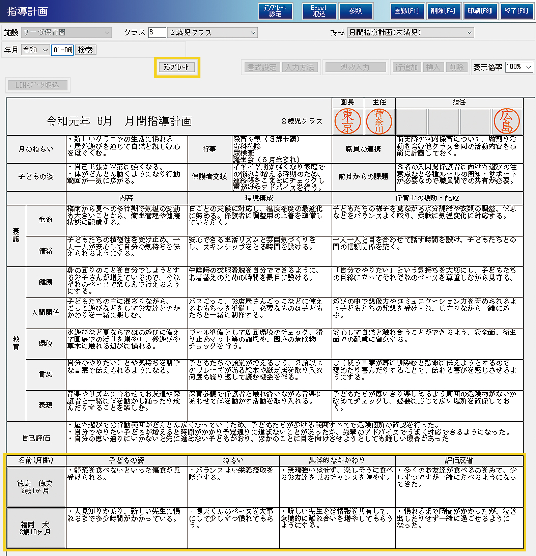 - 園児個別の計画も作成できます。