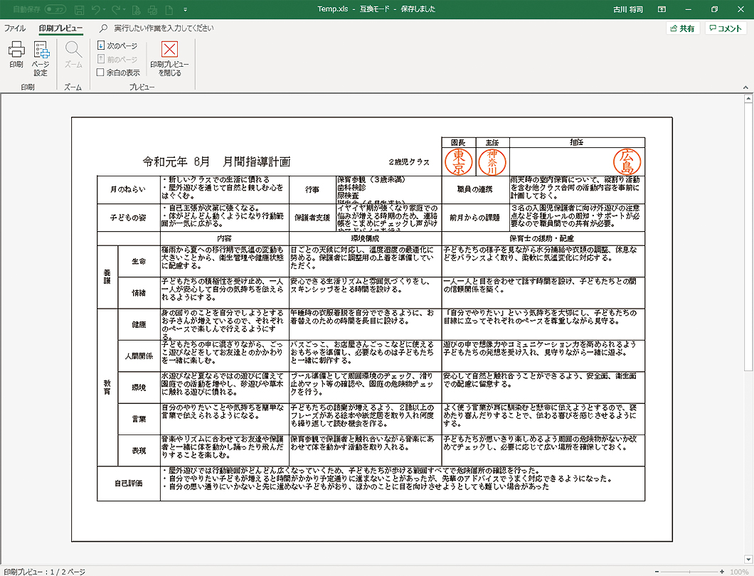園児台帳、月案・週案・日案と連動した指導計画の作成が可能です。園の様式に沿った独自の指導計画フォームにカスタマイズできるので、これまで手書きで行っていた様式を継承した指導計画の作成を実現します。