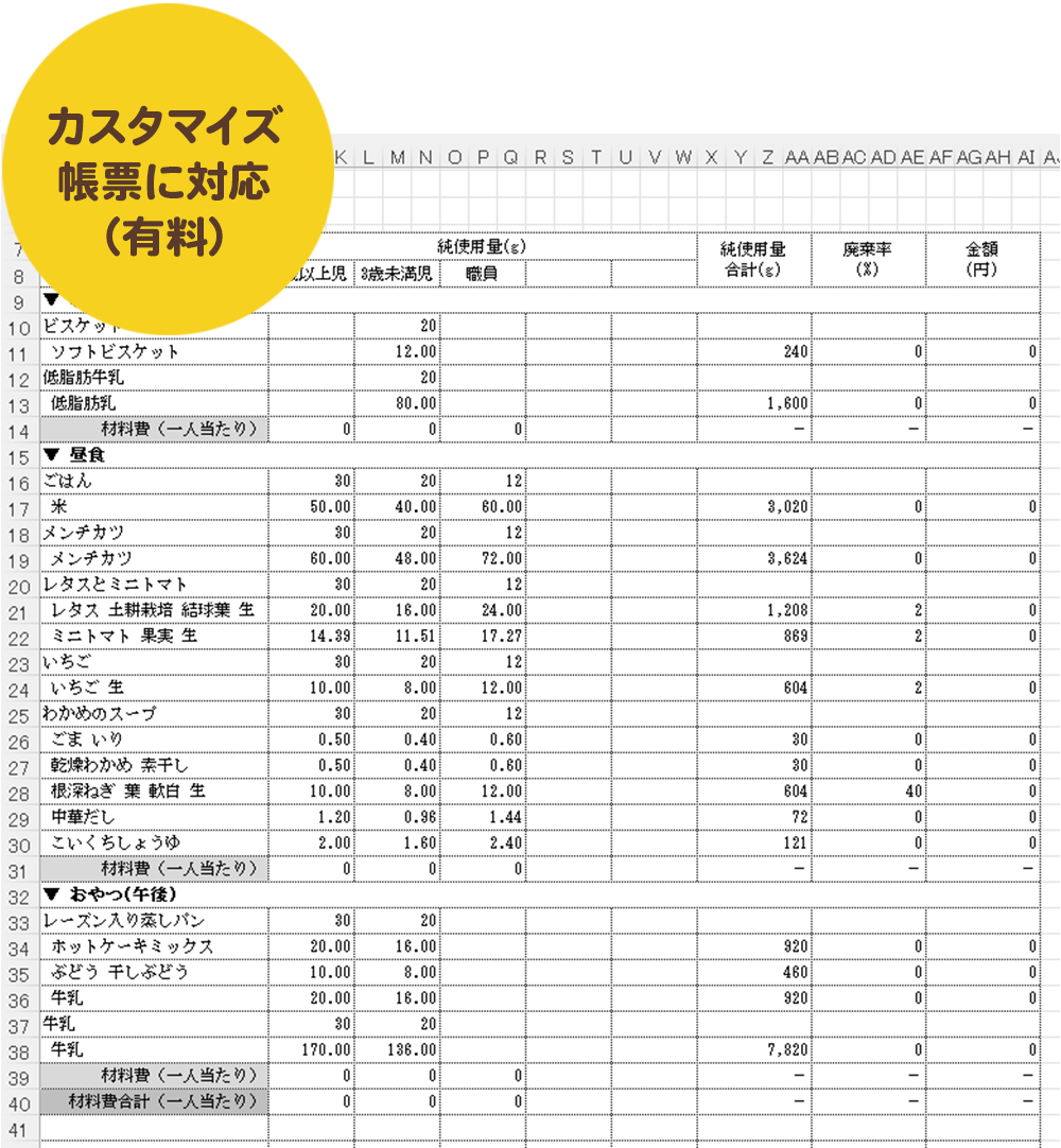 栄養価計算や発注量計算など煩雑な作業が不要に